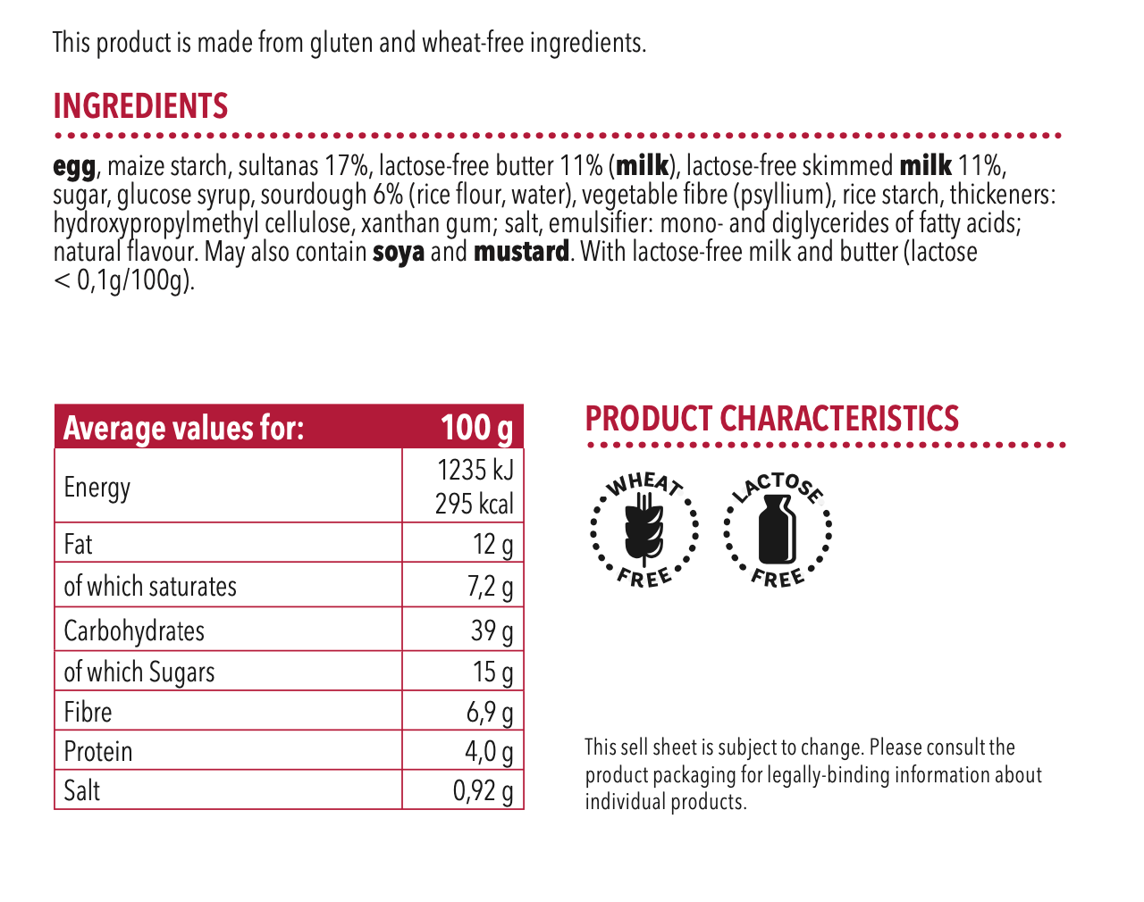 In recyclable packaging. Vegetarian. Specifically formulated for people intolerant to gluten.